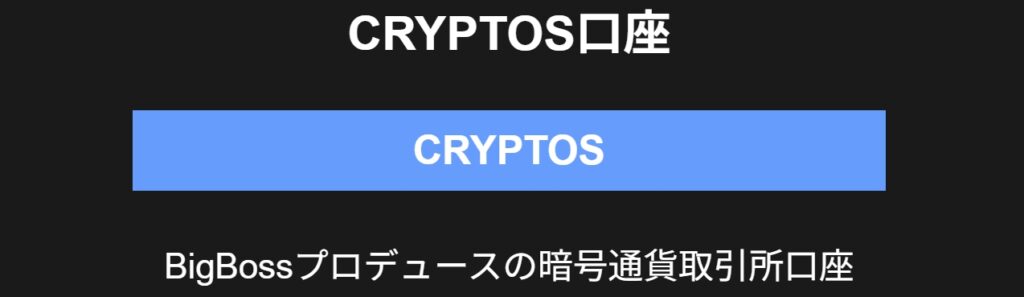 CRYPTOS口座は、BigBossが提供する仮想通貨専用の現物取引用口座です。