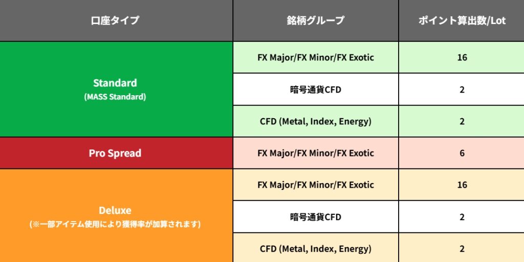 デラックス口座は標準的な付与率ですが、専用アイテムを活用すれば効率をさらに高められます。