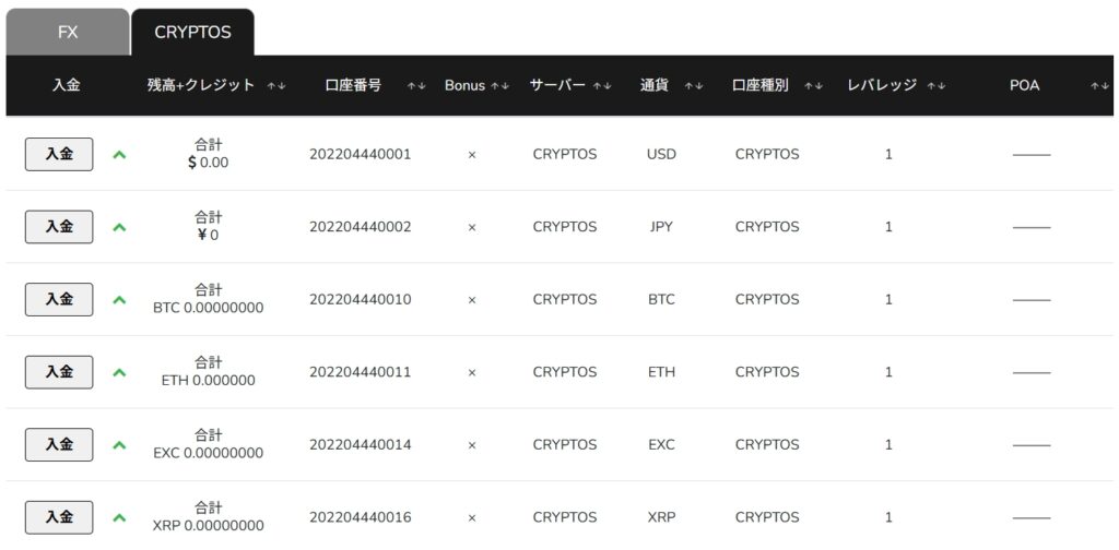 CRYPTOS口座は、レバレッジをかけずに仮想通貨をそのまま保有できる現物投資用の口座です。