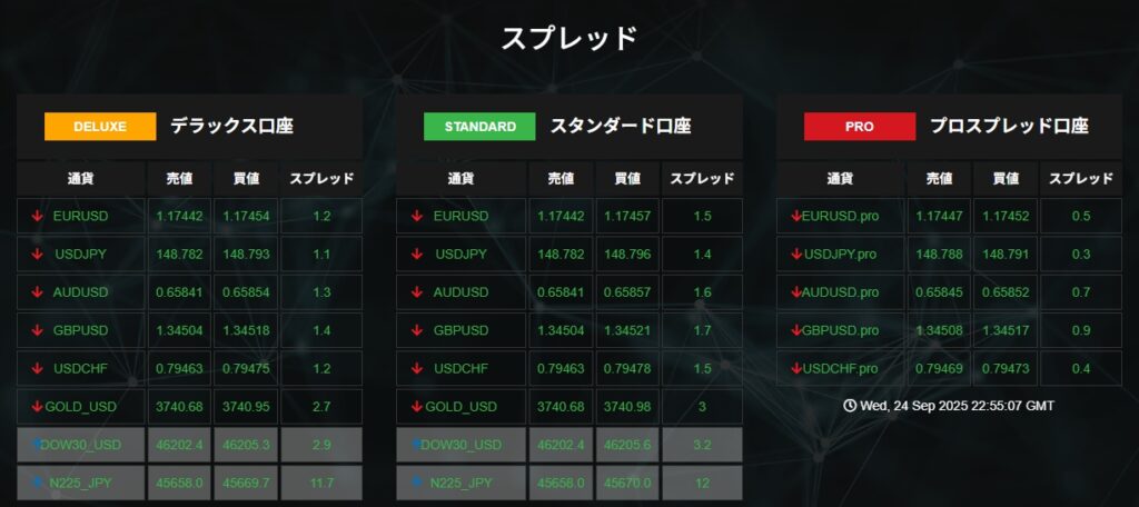 スタンダード口座でもデラックス口座でも共通のルールで、スプレッド以外のコストは一切発生しません。