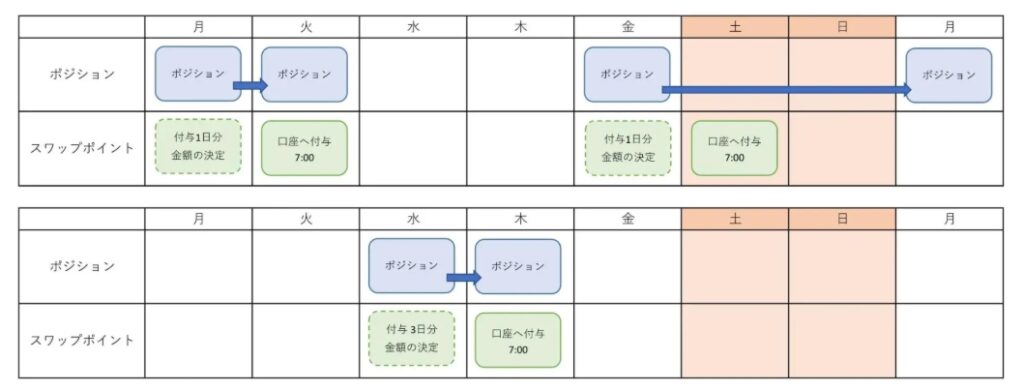 ポジションの翌日持ち越しでスワップポイントが発生する