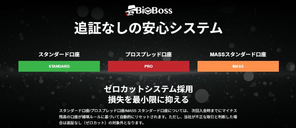 BigBossの仮想通貨FX口座では、ゼロカットシステムを採用しています。