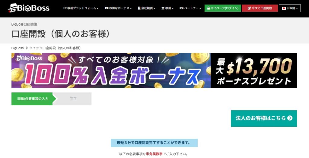 BigBoss(ビッグボス)は、仮想通貨FXにも対応している海外FX業者です。