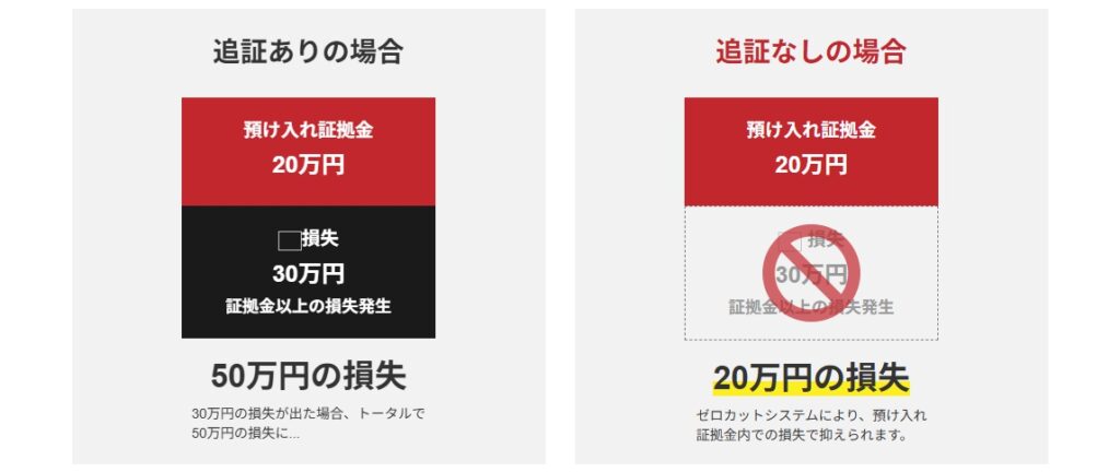 万が一相場が急変して口座残高がマイナスになっても、追加で資金を請求される心配はありません。