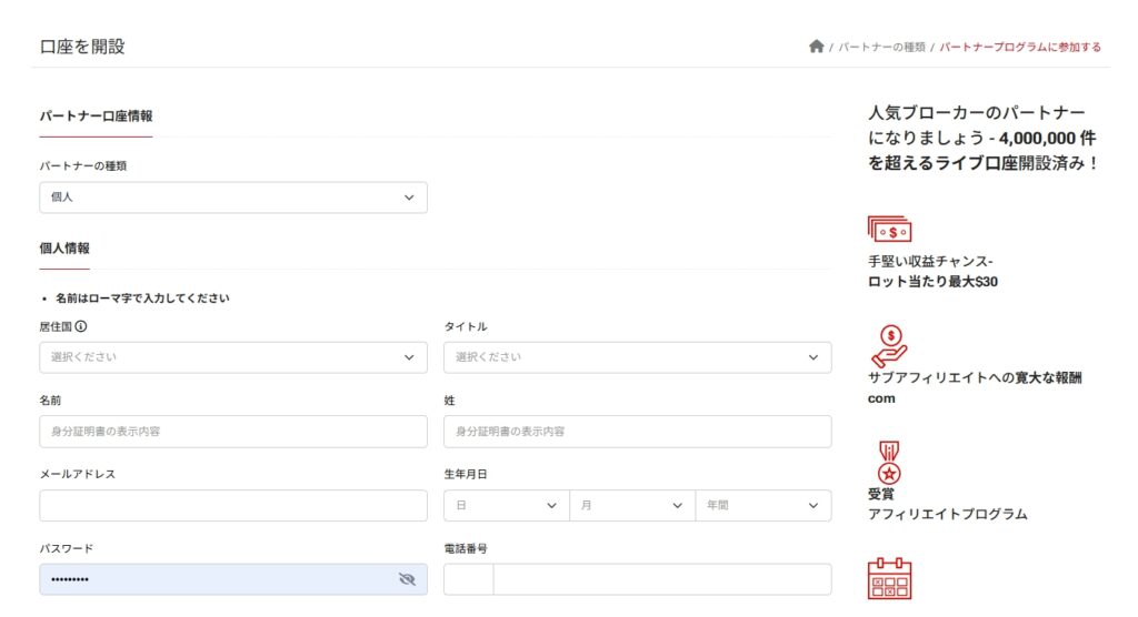 発信する媒体の準備が整ったら、次はHFMのパートナー口座に登録します。