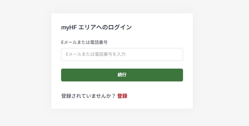 ログインするには、口座開設時に登録したメールアドレス宛に届く「ログインID(myHF口座ID)」と「パスワード」を使います。
