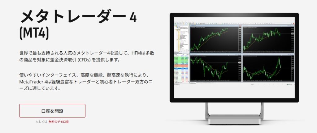 - HFMの公式サイトからMT4をダウンロードし、PCにインストールする