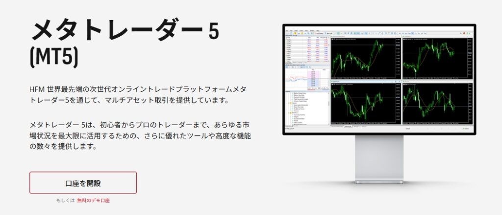 HFMではMT4だけでなく、MT5(MetaTrader5)も利用できます。