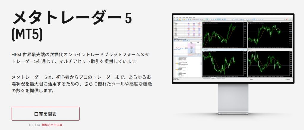 HFM(HF Markets)では、高性能な取引ツールとしてMT5を利用できます。