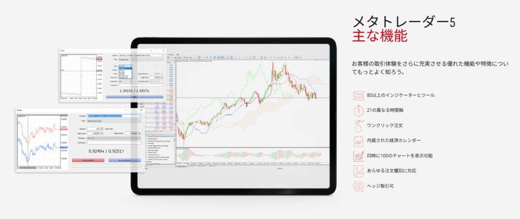 • ワンクリック注文や経済指標カレンダーが標準で搭載されている