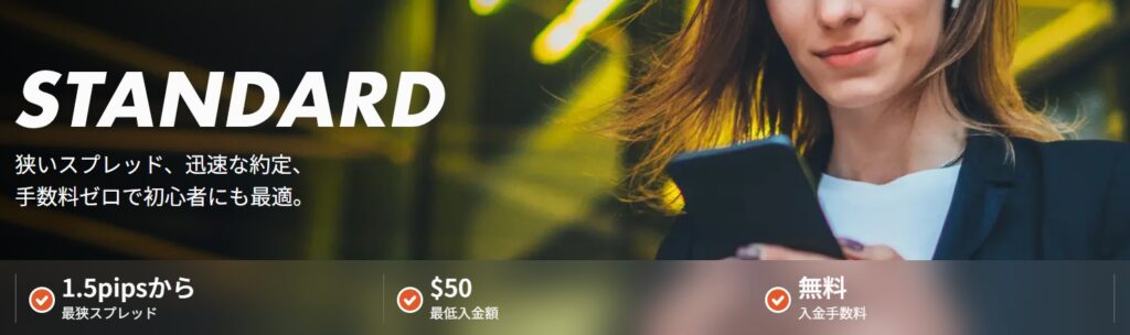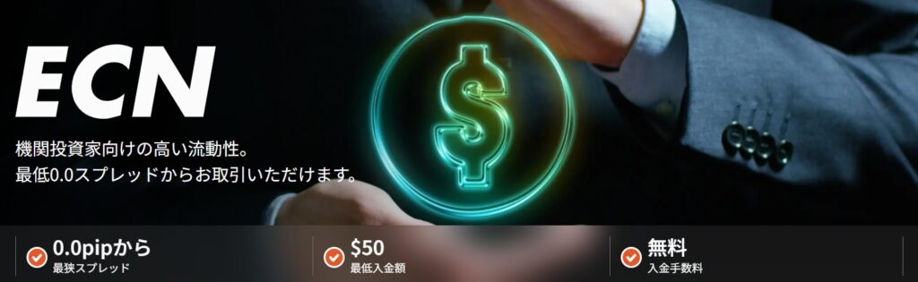 スタンダード口座とECN口座は50ドルから利用でき、少額でトレードを始めたい人に向いています。