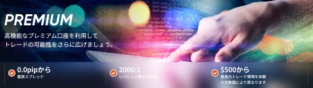 さらに大口取引を行うトレーダーには、より有利な条件が揃ったプレミアム口座も用意されています。