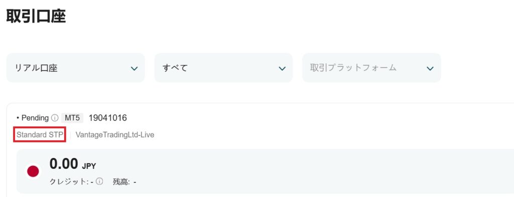 スタンダード口座は、Vantageで最も利用者の多い基本タイプです。