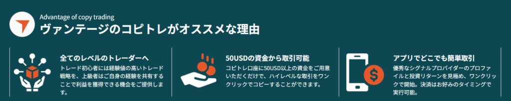 コピートレードという仕組み自体のメリットに加え、海外FX業者であるVantageならではの強みもあります。