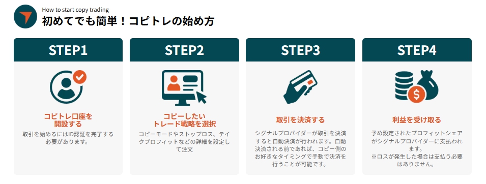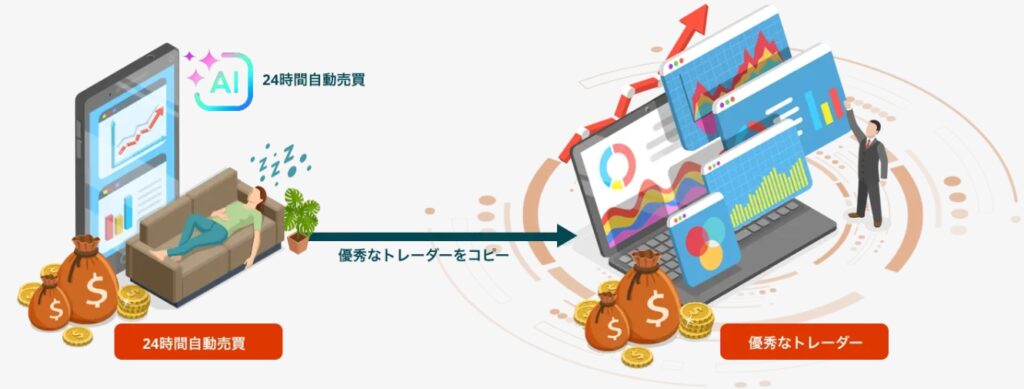ただし、コピーするトレーダーが損失を出せば同じ影響を受けるため、完全にリスクがなくなるわけではありません。