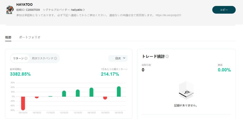 アプリ内ではこれらの情報がグラフ化されており、利益率や安定性を一目で確認できるため自分に合ったトレーダーを選びやすいです。