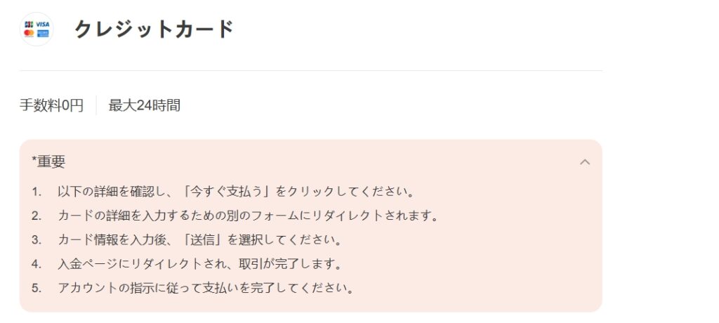 カード会社によっては制限がかかることもあるため、念のためBitwalletや仮想通貨入金も選択肢に加えておくと安心です。