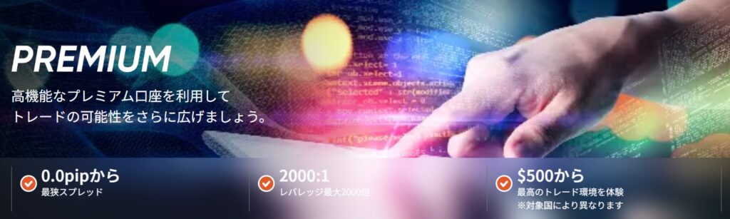 プレミアム口座の利用には3,000ドル以上の入金が必要