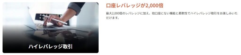Vantageでは最大2,000倍という圧倒的なレバレッジを提供し、少ない資金でも大きな取引を行えるのが大きな特徴です。