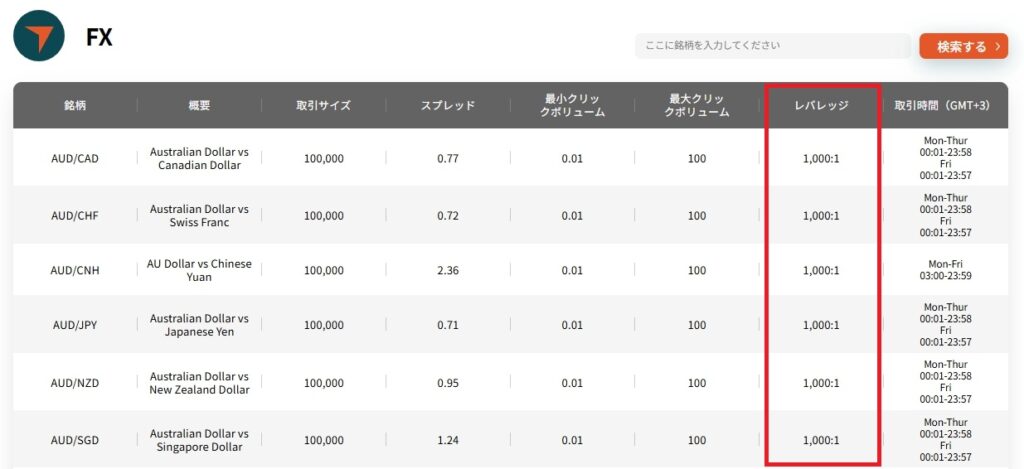 この超高倍率を利用できるのはプレミアム口座に限られますが、業界全体を見てもトップクラスの水準です。