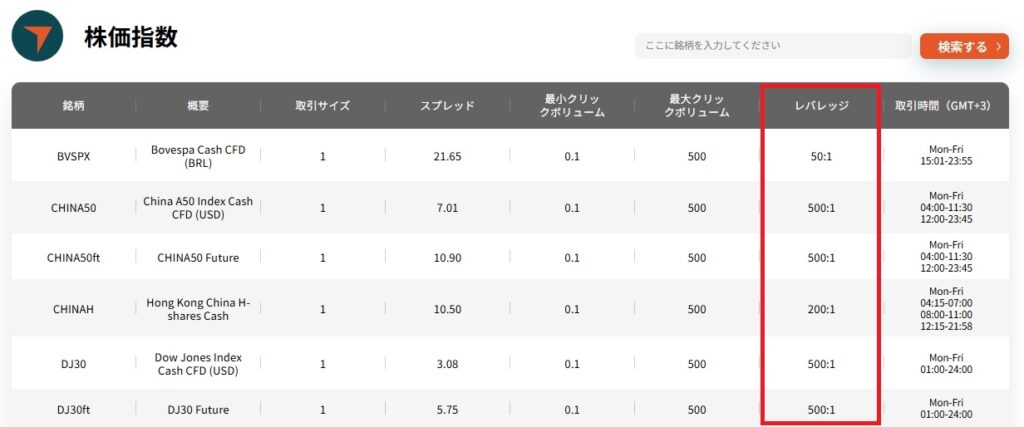 主要指数であれば高倍率で取引できますが、マイナー指数では制限が厳しくなります。