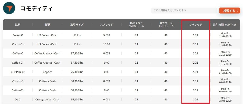 これらの商品は天候や需給バランスなど、価格変動要因が多くボラティリティが高いため、為替や株価指数ほどの高レバレッジは適用されません。