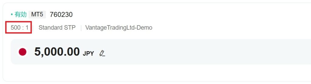 Vantageの新規口座を開設すると、初期レバレッジは多くの場合500倍に設定されています。