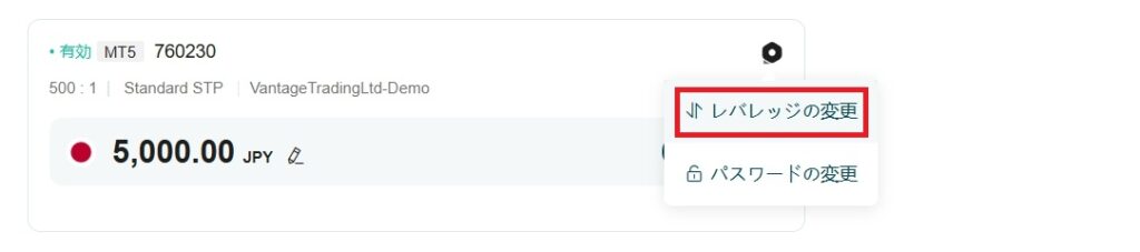 実際にVantageの口座レバレッジ設定を確認する方法および変更する手順を解説します。