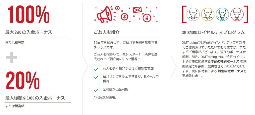 XMでは常時提供されているボーナスが複数あり、期間限定のキャンペーンも随時実施されています。