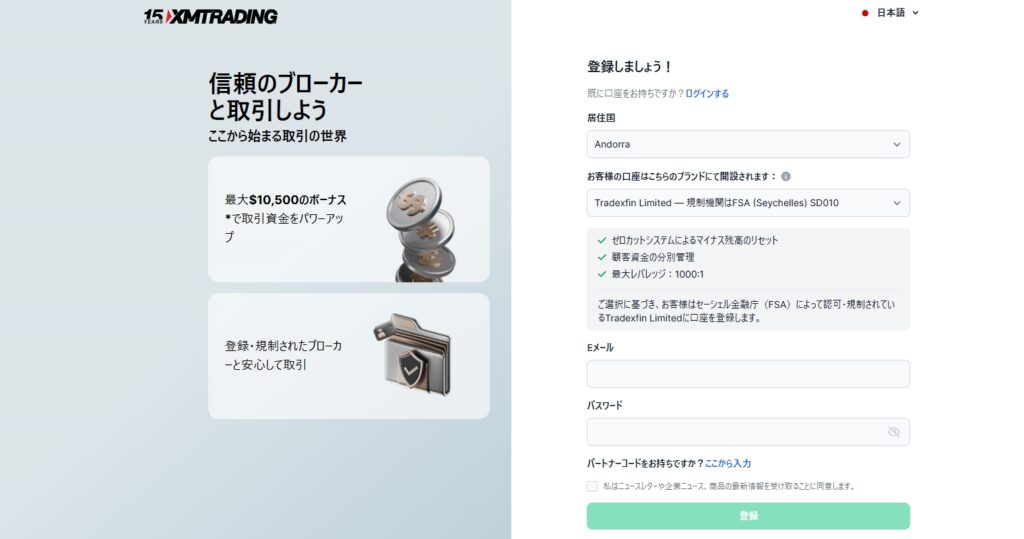 2025年現在、XMでは新規にリアル口座を開設した方全員に15,000円分のボーナスクレジットをプレゼントしています。