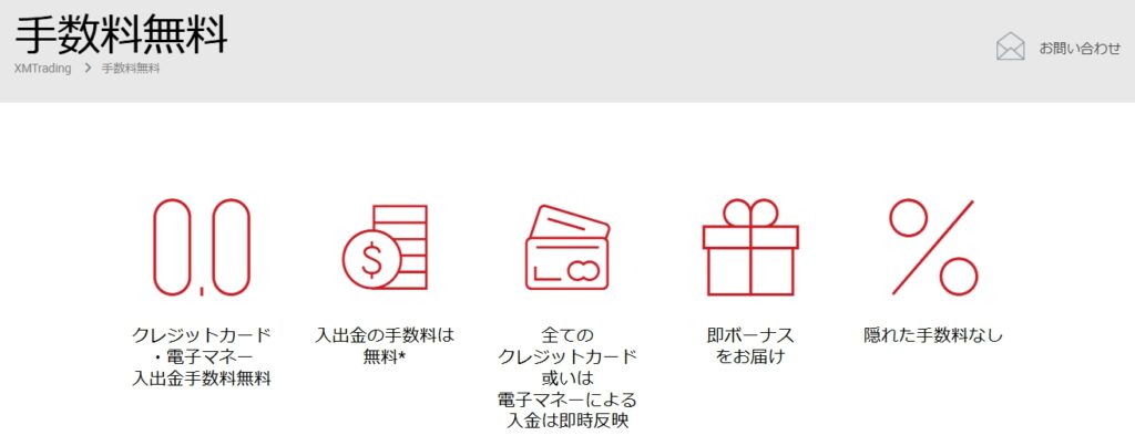 | 手数料無料サービス | XMが入出金手数料を全額負担(40万円未満の出金時のみ2,500円負担) ※ゼロ口座の取引手数料は別途発生 |