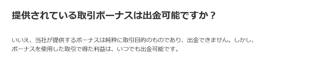 出金できるのは、そのボーナスを活用して発生した利益部分に限られます。