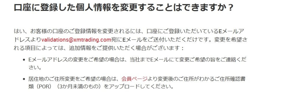 XMでは口座開設後でも、登録情報(住所・メールアドレス・電話番号など)の変更が可能です。