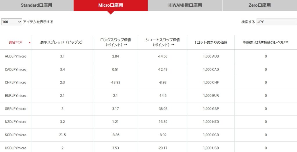 | マイクロ口座 | USDJPYmicro |