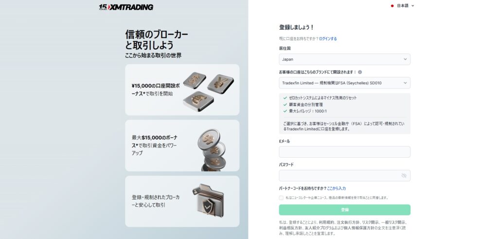 新規開設時には約15,000円分の口座開設ボーナスがもらえ、入金しなくても実際の取引を体験できます。