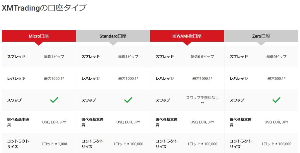 XMではスタンダード口座のほかにも複数の口座タイプを提供しており、それぞれ取引条件に違いがあります。