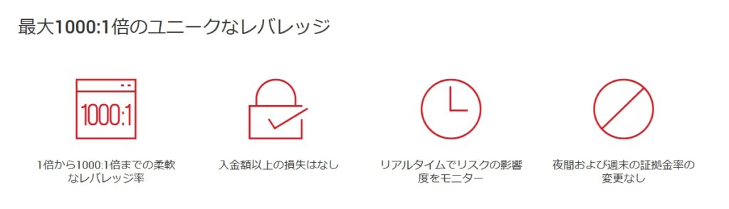 スタンダード口座と同じく最大1,000倍のレバレッジが使え、取扱銘柄も全商品に対応しています。