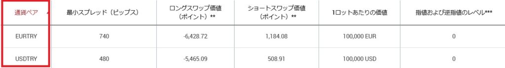 | 取扱通貨ペア | USD/TRY、EUR/TRY |